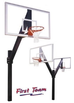 The Legend offers exceptional rigidity, uncompromising durability and maximum safety on even the toughest courts! Built from heavy 6" square 3/16" thick steel tubing, the Legend provides unmatched stability and durability. Designed for the most rugged playgrounds, the Legend performs under even the most aggressive play. The direct bury post is positioned 66" behind the backboard for safety. The extension arm on the Legend is attached to the veritcal post via six 5/8" high tensile bolts. Though the Legend is considered a "fixed height" goal, the extension arm can be bolted at any height along the post.